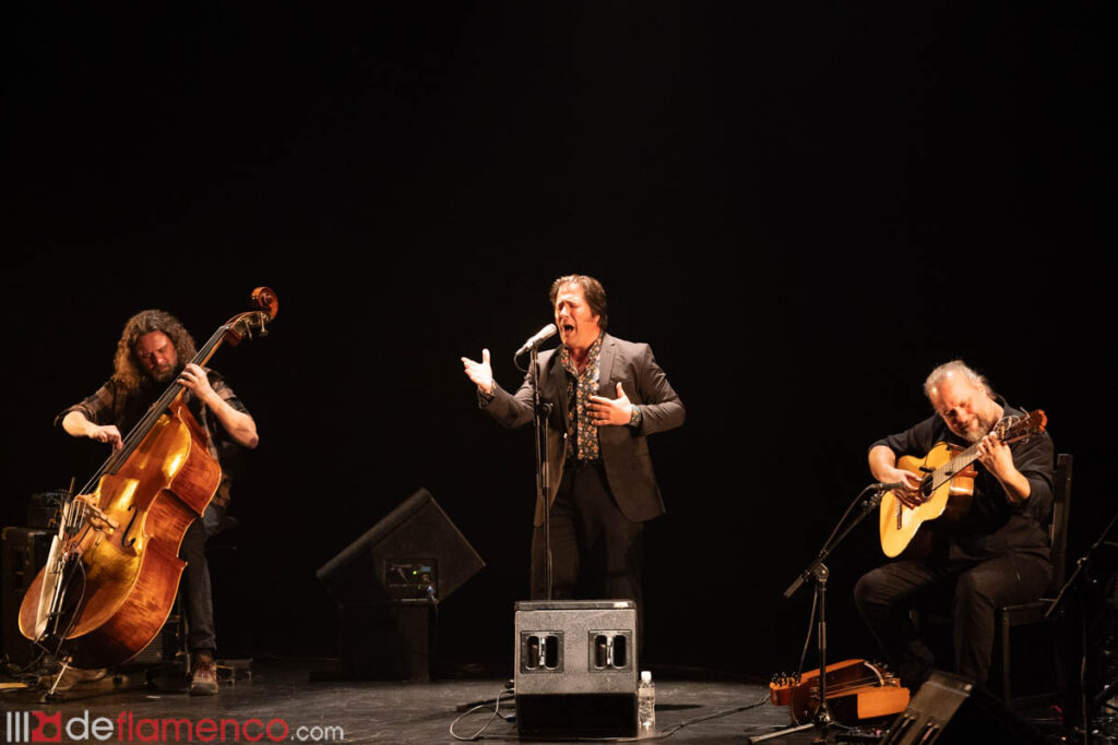 Dice el presunto instigador de la propuesta Pedro G Romero que lo de Sebastián Cruz son cantes de ida y huelva… y la humorada nos sirve para abordar el asunto de las vanguardias. Recordamos que la inspiración original del disco “Zarabanda” era la viola de gamba que ni suena en el disco ni suena en directo, sin embargo queda un aroma de la música barroca interpretada por -ojo al dato- Raul Cantizano a la guitarra y zanfona y director musical del asunto que preserva la voz flamenca y la rodea de la vanguardia sonora del siglo XX. Suenan disonancias y otros disparates ajenos a lo que los flamencos (y los barrocos) aceptan por costumbre con el añadido de las percusiones de Antonio Moreno que, a ratos, nos parecen que retan al compás aceptado y legítimo.