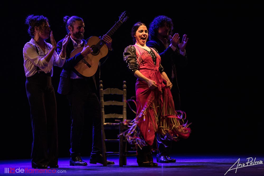Eso también lo consigue Vanesa, que pisa con peso y holgura, muy precisa y con gracia, segura y eficaz. Si el show se sostiene -además de las maneras de la madrileña- es, también, porque el elenco entra en su juego y le sigue el rollo, especialmente en los momentitos de age: las entradas y salidas del regidor Jorge Limosnita con un “ven aquí, chulo” de la bailaora, el amago de cante y de baile de Juan Campallo o cómo se dirigía al público un Jesús Corbacho sembrao mientras cogía la guitarra con saber… en definitiva, una teatralización creíble, salada y burlesca que arrancó las risas de los presentes hasta el baile con autojaleo de la protagonista que se ríe de sí misma, disfrutona y desajogá por bulerías. Eso sí, estaría bien revisar el estado de pluriempleo en el que parecen vivir Campallo y Corbacho, chiquilla, que están en todas partes…
