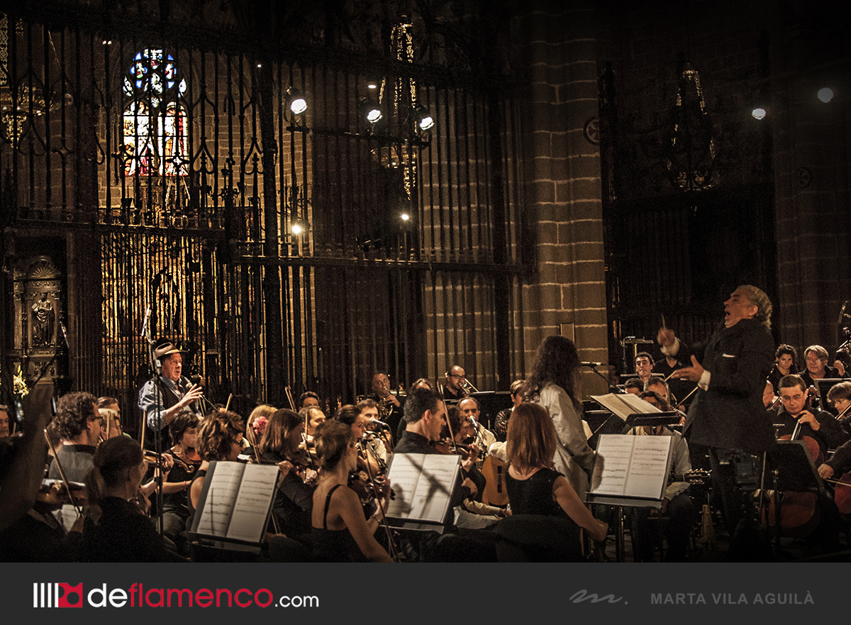 The overture was soleá interpreted by Selín, a gypsy from Tudela: «I sing to the earth and the heavens with my voice…» with orchestra and guitar. Following this, Pepe Habichuela, Josemi Carmona and Jorge Pardo got into soleá por bulerías. The Epiphany with its own aroma of incense that reached every corner of the cathedral, became tango-rumba preceded by the sound of bells from inside the church: «The love of God has power…» sung in chorus with guitar and orchestra. The Orquesta Sinfónica de Navarra carries important baggage. It is composed of a group of men and women, as well as characteristic instruments of this type of group, string, wind and percussion. The main part of the Eucharist, the most religious portion, is the «Kyrie Eleison», «God have mercy» in Greek. Homily and Offertory. The Consecration was done as a polo, interpreted by Kike Morente, with the guitars of the Habichuelas. He dedicated the mass to the memory of Agustín Castellón Campos, «Sabicas», who was baptized in this cathedral in 1912. Suffrage for his eternal rest. The religious meaning of the prayer was respected at every moment, in this case, the Lord's Prayer. Orchestra, chorus and flamenco as a single voice.