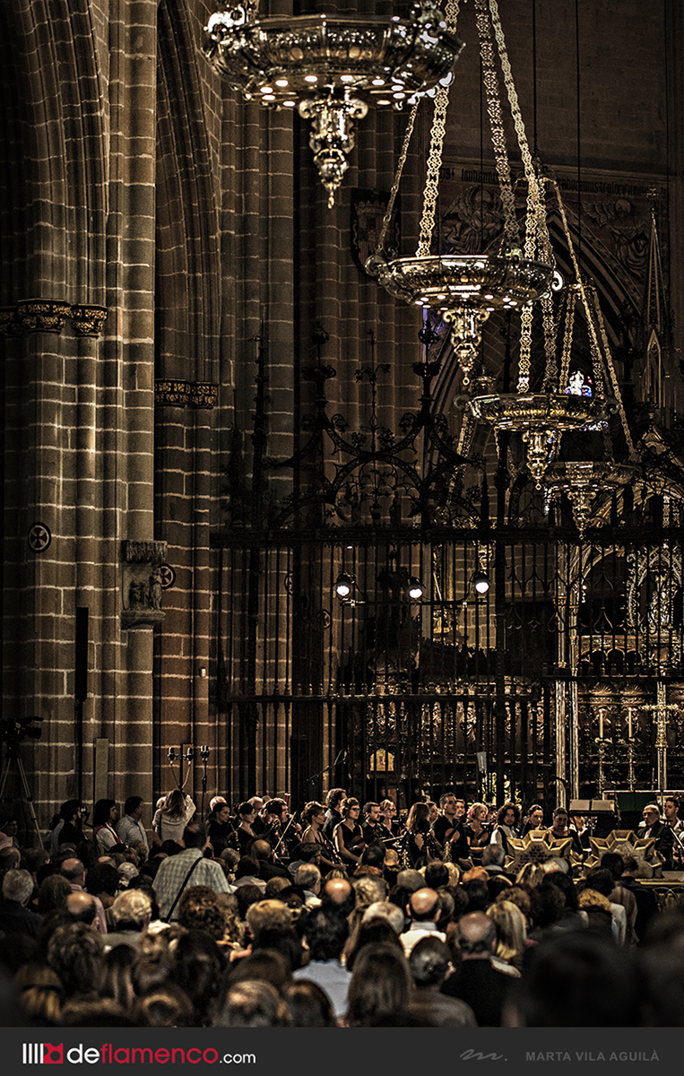 For Sunday's flamenco mass at midday, nothing was spared by the festival's organization, the Orquesta Filarmónica Navarra itself, as well as the municipal government and the Navarra religious chapter. At the outset, church authorities were uncertain about permitting the staging of a flamenco mass within the cathedral. Bot in the end an agreement was reached, and this meeting of the divine and the human was able to take place. An exceptional event, completely out of the ordinary, unrepeatable. Face to face, northern culture with its modal music in major and minor tones, along with that of Greek and Hindu cultures executed in other modes and scales. Flamenco is the only Western music that still preserves these oriental forms.
