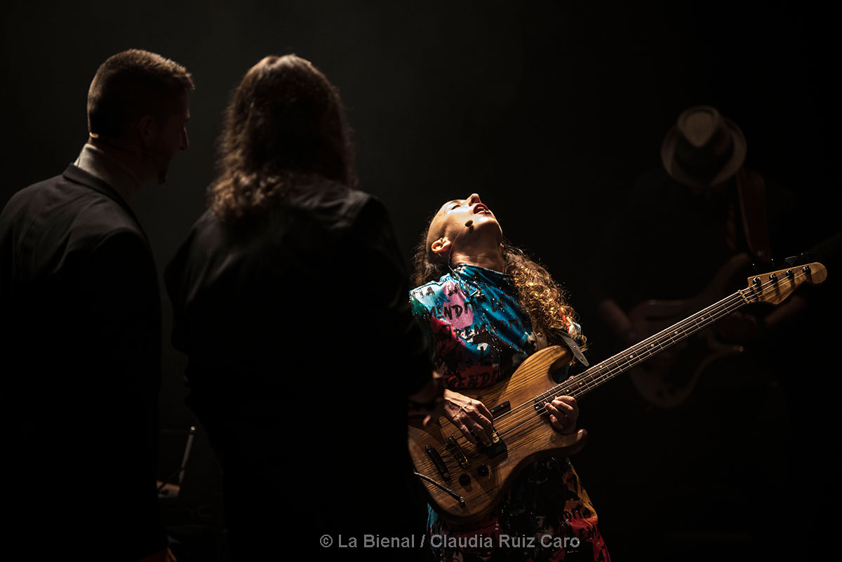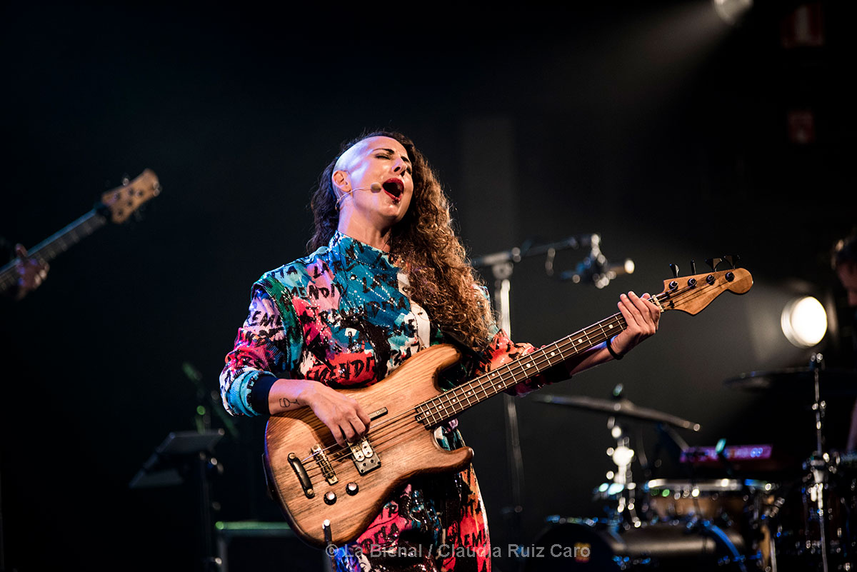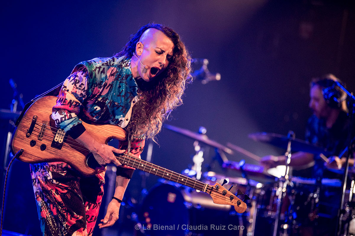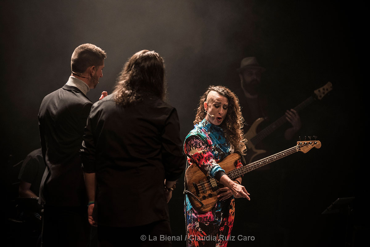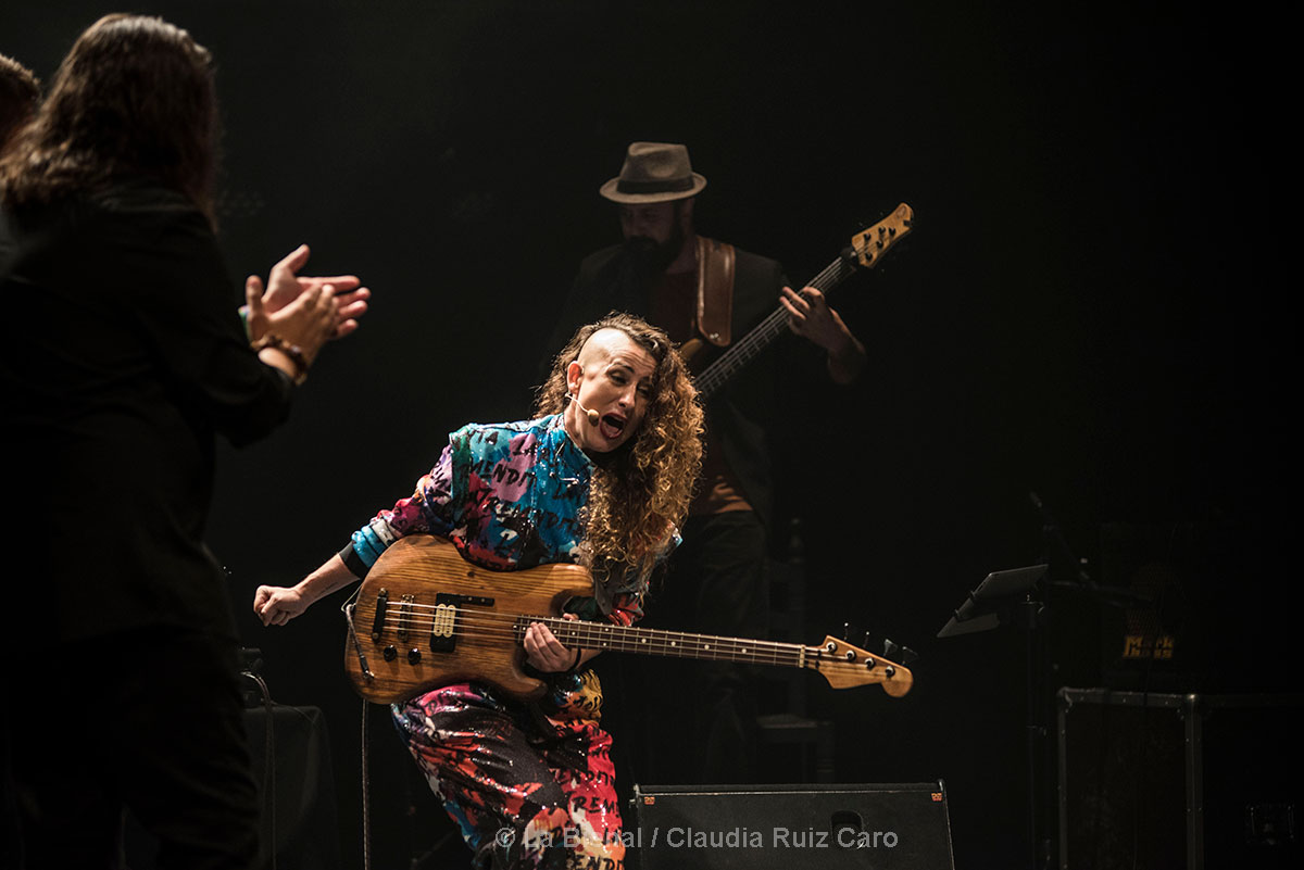 Espectáculo: Tremenda. Dirección, voz, bajo eléctrico y guitarra: Rosario La Tremendita. Textos: Laurent Berger, Rosario La Tremendita, Federico García Lorca. Composición y producción musical: Rosario La Tremendita y Pablo Martín Jones. Batería y electrónica: Pablo Martín Jones. Bajo eléctrico: Juanfe Pérez. Teclado y electrónica: David Sancho. Palmas: Tremendo Hijo y Tobalo. Artistas Invitado: Andrés Marín. Lugar: Teatro Lope de Vega. Ciclo: La Bienal de Flamenco Fecha: Martes 29 de septiembre. Aforo: Lleno.