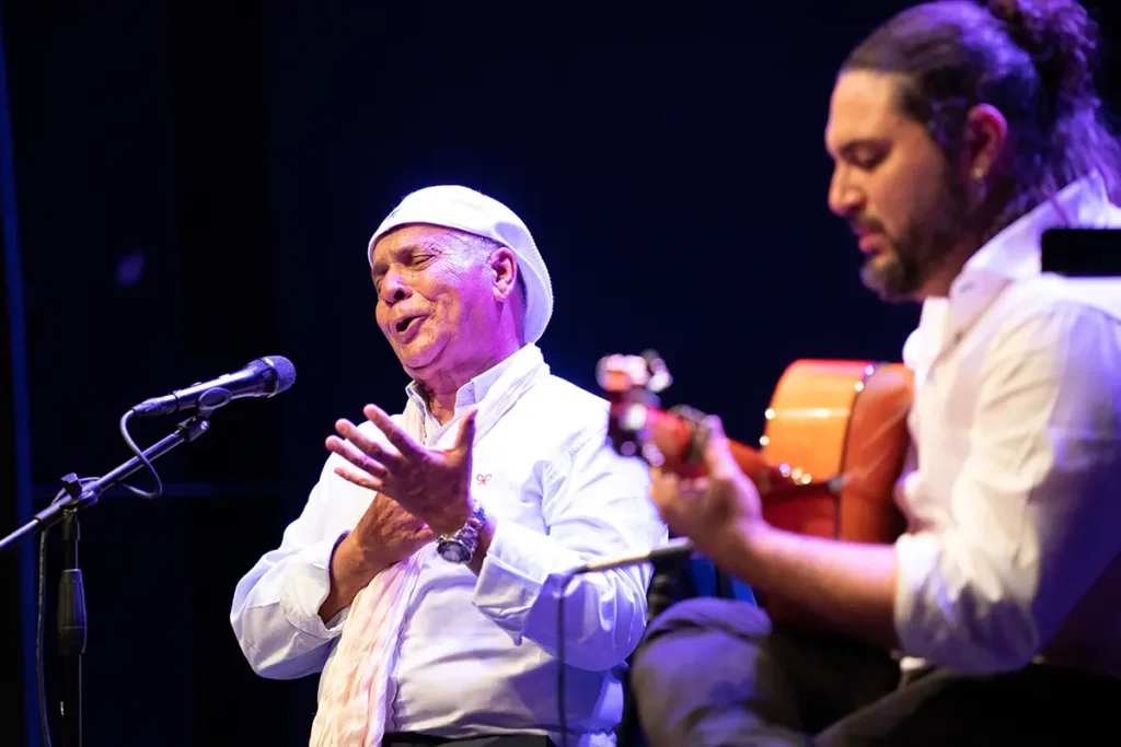 Ya saben que este cronista prefiere identificar las sensaciones antes que los cantes y eso resulta especialmente interesante con el Pele que lo canta todo a su manera. Anunció unas alegrías y citó a Pericón y Aurelio para luego recordar que no iba a cantar como aquellos, aunque el paisaje se parece mucho al de la Bahía de Cádiz y nos habló de una barca sin vela y sin remos y al rato estaba en la playa discutiendo con alguien que se la quería comprar. El Pele pasa de la claridad del relato a encoger el cuerpo, estrangular la voz, descomponer la figura y expresarse con un galimatías ininteligible que uno interpreta como “que no vendo esa mierda de barca por mucho que me paguen”, o así. Mi método para traducir el enigma consiste en escuchar al cantaor como si fuera John Coltrane flotando en la playa, uno se deja llevar por la ola mientras no salpique. Estás así, muy cerquita del éxtasis cuando aparecen los versos de Rafael Alberti: “Si mi voz muriera en tierra…” que a los aficionados con algunas canas nos trasladan a Morente… y El Pele lo canta distinto y también magistral. Un clavo saca otro clavo, imposible entonar esos versos sin ver el paisaje de la bahía.