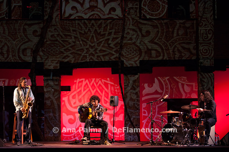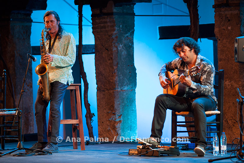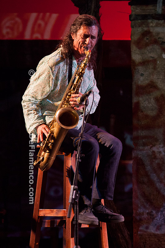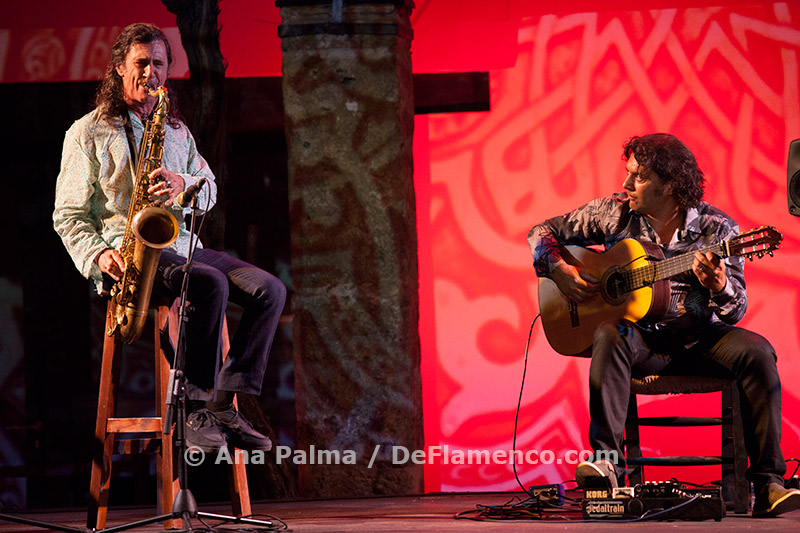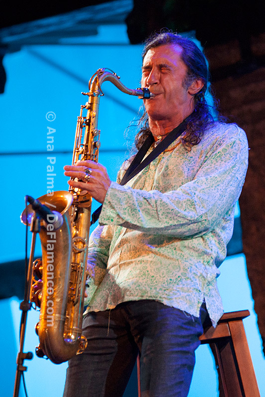 Pardo was the master of ceremonias for Josemi Carmona and Bandolero on a night full of fusion, of flamenco background music made into a jam session in the purest style of jazz musicians. The play of melodies went from the guitar to the flute and the saxophone accompanied by the percussion and drums of Bandolero. Camarón was present throughout the night, whether it was the Cádiz bulerías of La Perla or the Cuatro Muleros, and forever Paco in our memory with Almoraima and the musical subtlety of Jorge Pardo.