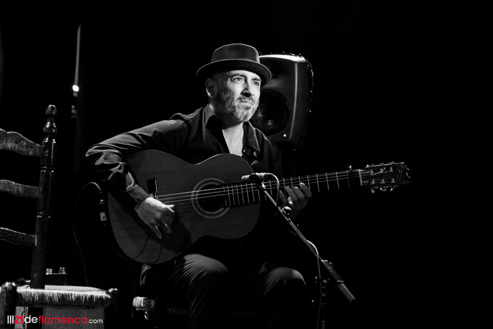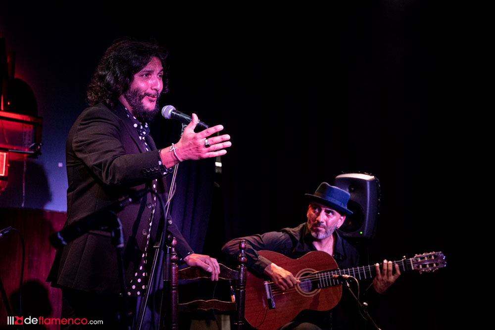 Rycardo comienza la segunda parte con una introducción en solitario a las seguiriyas que Antonio interpreta con el alma antigua y una afinación de lujo. Suena raro que suene tan bonito porque los antiguos nos han acostumbrado que abordan ese cante desde las gargantas heridas por la vida, ya fueran Tío Borrico o Agujetas. Concentrado en la tarea, Antonio se dirige por primera vez al personal para preguntar que qué les apetece escuchar y nos caen una tanda larga de bulerías que da gloria oírlas porque hay referencias camaroneras y Rycardo construye su parte con un espíritu minimalista que deconstruye casi todos los sonidos legendarios de Tomatito. Es eso, o lo he soñado, que este flamenco si que es una experiencia inmersiva y no el cuento ese del metaverso.