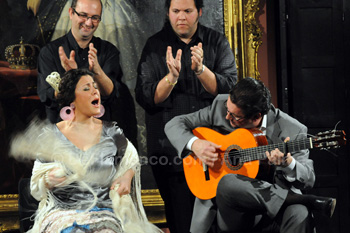 Texto: Estela Zatania / Fotos: Ana Palma Galeria fotográfica completa Anabel Rosado, Macarena de Jerez Actualmente, está de moda destacar a las mujeres, y este año, con nueva directora, el Festival de Jerez está dando un lugar importante a una serie de interesantes intérpretes, tanto en baile, como en cante y guitarra. En el acogedor salón del Palacio Villavicencio, lugar reservado para actuaciones acústicas, dos jóvenes pero experimentadas jerezanas compartieron recital. Anabel Rosado es bien conocida en Jerez por su voz dulce, su guapa elegancia y forma pulida de entregar los cantes. Con el acompañamiento impresionante pero subestimado de Antonio Higuero, cantó por tientos tangos,”una pincelaíta de cante minero”, fandangos y bulerías. A la que hemos descubierto es Macarena de Jerez. Es un secreto a gritos que los jóvenes jerezanos prácticamente han dejado de cultivar el cante. Los varones siguen un camino semi roquero, y las hembras tienen más interés en Pastori que en Pastora. Macarena de Jerez es joven, pero tiene tablas para construir una casa. Tiene carisma, la chispa de la inmediatez, obediencia a las formas antiguas haciéndolas suyas, soltura, conocimientos que sólo se alcanzan a través de las vivencias. Con el enérgico acompañamiento de Manuel Jero hijo, cantó por tientos tangos con un aroma a antiguo, y una delicadeza que se escucha demasiado poco en Jerez. Malagueña, ídem, con mucho paladar (aquí el guitarrista inventó todo un lenguaje nuevo, y bienvenido sea). Fandangos tocados ‘por medio’, y bulerías con la autenticidad de haber pasado mil batallas. Y por si fuera poco, la señorita baila de verdad…no la cansina pataíta que en esta ciudad pasa por graciosa, sino baile con fundamento y personalidad.