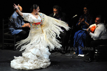 Special XIII Festival de Jerez 2009. All the information Text: Estela Zatania / Photos: Ana Palma Photo gallery Laura González, Marga de Jerez For those readers following the series of recitals by women guitarists being offered by the Festival de Jerez, let’s clarify something. Historic female singers who used to accompany themselves on the guitar with basic chords, cannot be compared to concert soloists with high technical level and ample repertoire. At the Palacio de Villavicencio young women of the second type have been programmed, professional guitarists who can stand on their own. Laura González from Córdoba, a city with a strong guitar tradition, last night offered a dignified recital, exhibiting a dynamic touch and good execution throughout complex material that included granaína, zapateado, alegrías and a beautiful guajira. In the second part, young Jerez singer Marga de Jerez surprised us with her experienced and instinctive delivery. Even more surprising is to discover from her curriculum that she learned at one of the many schools which tend to turn out young ladies with lots of cante and little personality. In fact, Marga is all personality…chatting up the audience, joking with her group, singing with a voice that sounds like none other, even when interpreting old cantes she had to have learned from recordings. It was an unfortunate miscalculation to have brought heavy-duty percussion to the intimacy of the small room at the Villavicencio, and in any case, I’d say Marga is self-sufficient enough to stop a train. Debla, toná, updated farruca, bulería por soleá without guitar, personalized and very much in the Jerez style, tangos, fandangos, bulerías with well-administered cuplé, something rare in Jerez singers (they tend to sing complete songs, which isn’t the same thing), full of authentic flavor….and a fiesta ending with the singing of guitarist Manuel Yunque, and dancing by the palmeros included. Young Marga de Jerez sings with her eyes open…literally…a sign of her self-confidence and the desire to be recognized as she deserves. Miguel Ángel Berna, Úrsula López, Rafael Campallo Dance: Miguel Ángel Berna, Rafael Campallo, Úrsula López. Cante: Juan José Amador, Miguel Rosendo. Guitar: Jesús Torres, Javier Patino. Aragonese musicians: jota singer, Lorena Palacios, Spanish guitar, Guillermo Gimeno, bandurria, Alberto Artigas, percusión, Josué Barres. I love jota…anything wrong with that? Years ago, nearly all the flamenco dance companies included a jota dance in their repertoires, and I learned to appreciate the only Spanish folkloric dance, with the exception of sevillanas, that can compete with flamenco. The half-innocent, half crude way of singing, the sound of the bandurria, those impossible jumps and cabrioles, the castanets, the subtle flirtation between young men and women, the popular humor…”Is that the road to Zaragoza?”…”Nooo…that’s the road FROM Zaragoza!” But just as has happened in flamenco, the Aragonese folkdance par excellence, now seeks the sophistication that will allow it to be accepted by a broader audience. Dancer Miguel Ángel Berna has done a lot to renovate and domesticate the jota, eliminating the traditional Aragonese costume and adding the elegance of his figure and power of his talent. “Flamenco se Escribe con Jota” is visually entertaining, if a bit short on pretext. Historians tell us that flamenco’s alegrías are a direct descendant of the jotilla of Cádiz, by way of the jota, with the important intervention of Enrique el Mellilzo…so far so good. But it makes no sense to harp on the shared scale and compás when a large part of the Western world’s folklore has the same three quarter time and major key. Once you assimilate the contrived pretext (there is much overlapping of jota and alegrías), you settle into your seat to appreciate the feats (no pun intended) of Berna, the sharp dry style of Rafael Campallo and the beauty of Úrsula López. Berna pulls off astonishing sounds with the castanets he wears on his middle finger, managing a continuous roll as good as anyone ever did wearing them on the thumb – it’s the equivalent of typing faster with two fingers than someone using all ten. He doesn’t use the typical leaps for easy applause, but administers them with taste. The sweetly rancid voice of Lorena Palacios, the jota singer, raises more goose-bumps than some flamenco singers. Rafael Campallo is unique, one of the best-prepared dancers of his generation, with a personal and very flamenco style, movements of old men, distilled and adapted to his age and faculties, reflecting the excellent training from his maestros, Manolo Marín and José Galván. Úrsula López interprets a long tientos tangos, but her most important function is in unifying the two genres in this admirable and entertaining show. Pastora Galván Dance: Pastora Galván. Cante: David Lagos, La Tobala. Guitar: Ramón Amador. Percussion: José Carrasco. Pastora Galván, far from being “the sister of…”, is a miracle. A great dancer with much to draw on, she is alternately classic and conventional, avant-garde and surreal, and physically beautiful. I can’t recall any performance of hers that has not left me impressed. In a certain sense, she has the same quirky genius as Israel, house-broken and digested for consumption by the kind of audience that is suspicious of anything announced as “a daring work”. The first number is just plain perfect. A family gathering is represented: Pastora, dressed as a frumpy housewife, gets up and dances the dance of old neighborhood patios, including typical suggestive movements, good humor and intuitive knowledge of a past she can only have heard about or seen in old footage, far-removed from the flamenco dance of cafés cantantes and tablaos. In fact, a certain process of distillation can be observed, from that autochthonous Andalusian dance, to today’s Galván style.