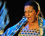 El programa tenía un escueto equilibrio: el taranto para recordar a Fernanda Romero, alegrías para evocar al primer Farruquito, hermano de la Farruca, cantiñas a Matilde Coral (presente entre el público), zambra caracolera para Lola Flores, seguiriyas a la memoria de Carmen Amaya y la soleá al Farruco viejo cuya personalidad y empaque siguen siendo el alimento psíquico y fuerza motriz que mueve esta familia. La Farruca logra mantener personalidad propia dentro de una saga de fenómenos del baile. La línea familiar nace del baile masculino de velocidad, fuerza y un machismo sin miramientos. Pero la hija del viejo Farruco ha tenido la inteligencia y sensibilidad de encontrar una línea de intensidad felina dentro de este concepto que ha trabajado y desarrollado admirablemente. Ahora está con ánimo de retirarse del baile, y había anunciado que este espectáculo sería el último. Pero con la amplitud de posibilidades que aporta el flamenco tradicional, la noche tuvo dos protagonistas sorprendentes. En el 2003, hace exactamente ocho años, descubrimos al pequeño Carpeta, hijo menor de la Farruca. Con cinco añitos que tenía entonces, ya asustaba con su compás y sabiduría. Ahora con trece, está muy cerca de ascender a máxima figura, y su actuación anoche, no la típica pataíta sino un baile por alegrías, se sintió como la pre consagración del pequeño genio vestido de raso rojo. El otro protagonista sorpresa fue el cantaor Pedro el Granaíno. Lleva años en el atrás de los espectáculos de esta familia, sin que tuviera oportunidad de demostrar su capacidad o personalidad. En este “Homenaje a los grandes”, con una variada serie de cantes difíciles que fue la espina dorsal de la obra, no sólo evocó magistralmente a Caracol para la “Lola” de la Farruca, sino que recordó a otros maestros históricos del cante, y dio sustancia a gran parte del espectáculo con su voz acamaronada de miel tostada. SANTIAGO LARA TRÍO “AMALGAMA” A la medianoche en la Sala Paúl, espacio reservado para los artistas jóvenes o el formato pequeño, dentro del ciclo “De la frontera”, el guitarrista Santiago Lara ofreció un recital de guitarra contemporánea con el apoyo del piano de Miguel Ángel López y la batería de Antonio Coronel, además de la espectacular colaboración de su señora Mercedes Ruiz al baile. Siguiendo el sistema del recital que ofreció hace unos meses en la Bienal de Sevilla, Lara tocó una serie de composiciones originales con ánimo y estética jazzísticos. Su excelente formación al lado del maestro Manolo Sanlúcar, le permite explorar e investigar sin perder el hilo flamenco, aunque me hubiera gustado que asumiera mayor protagonismo, y dejara menos al piano y percusión. Igual que ocurrió en Sevilla, Mercedes acaparó los más efusivos aplausos con su elegante baile que mezcla referencias antiguas y contemporáneas. A la una de la madrugada, en la Peña Tío José de Paula en pleno barrio de Santiago, los que tenían ganas del flamenco tradicional en un ambiente informal, pudieron gozar del Cuadro Flamenco del Garbanzo.