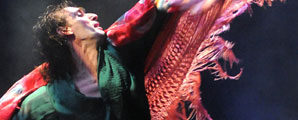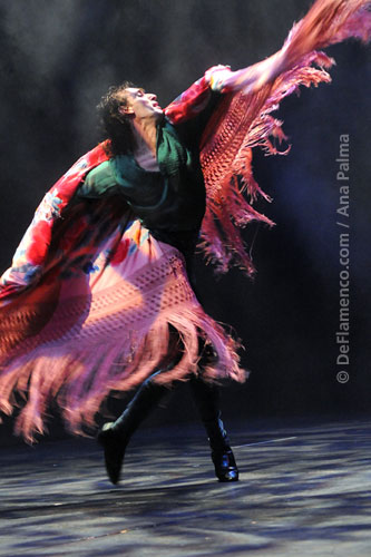 El espectáculo titulado “Tranquilo alboroto” empezó con todas las posibilidades de triunfar – un cuerpo de baile magnífico, buenas guitarras y voces y el buen gusto y sabiduría del que encabeza la compañía, Rubén Olmo – y de hecho, triunfó, tanto en la Bienal y también anoche en el Villamarta. Si los elementos son buenos, quizás falta cierta coherencia en la marcha de la obra. Lo que comienza con ánimo contemporáneo experimental, con el protagonismo absoluto de Olmo y un paisaje mental digno de un cuadro de Di Chirico (no todos los días ves a Jesucristo bailar como “Nazareno y gitano” con una banda de 75 cornetas y tambores), se convierte poco a poco en un cuadro flamenco al uso, la “Suite Flamenca”, cuando Olmo desaparece del escenario durante tres cuartos de hora. De hecho, la única queja que tengo con la obra es su descontrolada diversidad y un exceso de números de grupo, cuando lo que más impactan son los bailes individuales. Aquí hay material para dos obras completas. En el homenaje a Manuela Vargas, aquella diosa casi olvidada, “Las Manuelas”, Olmo es espectacular, y esto es uno de los puntos más memorables de la obra, junto con la “Falsa farruca” coreografiada por Israel Galván y luciendo la inconfundible personalidad de éste. En general, descargando un par de bailes del grupo, “Tranquilo alboroto” quedaría más impactante, pero no cabe duda que es un trabajo importante, realizado con mucho cariño e inteligencia, ambos atribuibles al polifacético Rubén Olmo.