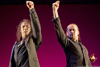 Quitando al Grilo, nada nuevo bajo el sol, pero con el poder depositado en mí, y que intento administrar con la debida seriedad, me da la gana de destacar a una de las personas menos conocidas de los principales. El bello misterio y la sinceridad de la siguiriya cantada por Mateo Soleá me hizo recordar las palabras del Tío Enrique Sordera que me contó cómo se despertaba a la gente en la gañanía por la mañana cantando por siguiriya. “GRITO” – JOSÉ MAYA Y ALFONSO LOSA Ficha artística: Baile : Alfonso Losa, José Maya; Cante: Antonio Ingueta, Antonio Núñez “El Pulga”, Saul Quirós, Mara Rey. Guitarra: Antonio Rey, Carlos de Jacoba; Percusión: Lucky Losada. Texto: Gonzalo Montaño Peña Grito es la propuesta de Alfonso Losa y José Maya, dos bailaores madrileños diferentes, pero también bastante parecidos, que en este espectáculo confrontan sus pies en una batalla por ser el más rápido del escenario. El espectáculo se abre con un audiovisual en la pantalla del escenario en la que se proyectan imágenes de las guerras del siglo XX. Mientras tanto un grupo de bailarinas recorren rápidamente el escenario dándonos a entender la locura de esta sociedad que formamos, que no para a pensar en las atrocidades que comete. Es este uno de los significados de una obra que por momentos me pareció bastante conceptual. En los bailes a dúo los bailaores están en todo momento perfectamente compenetrados en la coreografía y virtuosos hasta niveles altísimos en el nivel técnico. También el grupo que acompaña a los bailaores demostró tener un grandísimo nivel artístico, las guitarras sonaron compaginadas y ocupando cada una un espacio sonoro compatible y muy pendientes de aportar el colchón armónico rítmico al cante. Llevar a un guitarrista de la talla de Antonio Rey te asegura un buen respaldo que se nota en el resultado. Un poco más monótono me parecieron los cantaores, casi todos del mismo corte melódico, esto es de tesituras altas y frecuentes agudos. De la cuarteta de voces sin embargo destacaría la voz e intención de Antonio Núñez “El Pulga” que puso la nota de emoción entre tal despliegue basado en la técnica. También Mara Rey demostró ser distinta en los escasos momentos de protagonismo que tiene dentro del espectáculo y el baile por Bulerías final puso a todo el público en vilo en un instante. En los números en solitario de Alfonso Losa demostró que además de esa impresionante técnica que tiene en los pies, también tiene un braceo elegante, una actitud muy flamenca y unos cierres al cante con gusto, al estilo del Farruco. Igualmente técnico es el baile de José Maya, rápido como una centella en el taconeo, quizás un poco más racial y gitano en su concepto, pero definitivamente parecidos en el aspecto general de su baile.