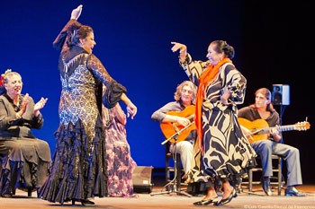 Lo mismo sucedió con Tomasa Guerrero “La Macanita”, luces y sombras, pero la diferencia estriba en que cuando esta gitana da luces estamos hablando de algo serio, de tener la capacidad de estremecer. Su eco y torrente prodigiosos pueden hacer que te rompas la camisa con sólo un ay!, un tercio por Soleá, una Bulería marcada atrás. Anoche cantó por Soleá y por Tonás con momentos “para comérsela”. Este tipo de espectáculos no suelen ser continuos, porque dependen del arte, no del ensayo; porque juegan con la improvisación, en lugar de buscar la perfección. Porque lo que te da es un momento de “Feeling”, de vibrar, en vez de hora y media de corrección. Aunque dentro de este entorno artístico casi imprevisible merece mención a parte Moraíto que siempre está bien. «LA GLORIA DE MI MARE» – Choni Cía. Flamenca. Texto: Estela Zatania Baile: Asunción Pérez “Choni”. Madre de la artista: Juanjo Macías. Don Cosme (empresario y guitarrista): Raúl Cantizano. Doña Amalia (cantaora y esposa del empresario): Alicia Acuña. Artista invitado: Manuel Lombo. Coreografía y coordinación artística: Asunción Pérez “Choni”. Colaboración coreográfica: Manuel Cañadas. Dirección escénica: Estrella Távora. Composición y dirección musical: Raúl Cantizano. Un día Asunción Pérez “Choni”, sevillana y bailaora, levantó la cabeza, miró detenidamente a su alrededor y contempló el mundo oscuro y deprimente del baile flamenco, la falsa sofisticación representada en incontables obras de tantos bailaores y bailaoras de su generación. Entonces, decidió que para borrar la imagen a veces cutre del flamenco de décadas pasadas, no es necesario recurrir a la frialdad y la ausencia de color. Digo yo que tuvo ocurrir así para que esta mujer fuese capaz de idear “La gloria de mi mare”, un verdadero homenaje a la cultura popular andaluza del siglo veinte, antes de que la globalización la transformara y homologara. En esta obra abundan los lunares y las flores, el color, la chispa veloz de la gracia surrealista que es marca registrada de Andalucía, desde aquellas ocurrencias del más humilde camarero hasta las extravagantes anécdotas gaditanas. Pero “La gloria de mi mare” no es una simple bufonada – como tampoco lo ha sido nunca la gracia andaluza cuya magia reside en la capacidad de acercarse a las realidades de la vida con paladar y valentía. Hay un emotivo trasfondo, no sólo de nostalgia, sino del auténtico amor que siente la bailaora por un arte singular y por una madre, la típica madre de niña talentosa, que pretende compensar los sueños no cumplidos al verlos realizados en la hija. No es fácil acercarse a los tópicos, porque corres el peligro de convertirte en parte de ellos. Se requiere a un genio como el polifacético showman y actor Juanjo Macías para identificar y representar lo satirizable de la vida cotidiana que nos parece tan “normal”. En la gran tradición de los mejores actores cómicos españoles como Martínez Soria, Landa o Fernán-Gomez, el genio de Macías es el motor que hace girar esta obra creada e interpretada por Choni. Como bailaora, es discretamente competente, representa la escuela sevillana con corrección y sin exageraciones. Pero lo más admirable en ella no es su forma de bailar, sino su imaginación y personalidad, una capacidad creativa que hace posible la comicidad en medio de una siguiriya.
