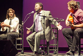 Especial XVI Bienal de Flamenco 2010. Toda la información. Programación, reseñas, fotos… “SIN MUROS! Una voz en alto ” DORANTES Texto: Estela Zatania Piano: Dorantes. Bandoneón: Marcelo Mercadante. Guitarra acústica: Ricardo Moreno. Violín: Faisal Kourrich. Contrabajo: Yelsy Heredia. Voz y coros: Rafael de Utrera. Palmas y coro: Hermanos Saavedra “Los Mellis”. Percusión: Tete Peña. Artistas invitados: Esperanza Fernández, El Pele, Pedro Peña, Renaud García. Colaboración especial: Pedro Ma. Peña, guitarra. Música original: Dorantes. Asistir a un recital de piano presentado como “flamenco”, es siempre un acto de fe para el aficionado, cosa que supongo que eres si estás leyendo estas palabras. Las habituales señas de compás, cante, falsetas clásicas, etc., apenas están presentes, o cuesta identificarlas, y el sonido rotundo del piano pisa fuerte comparado con el de las seis cuerdas de una guitarra, haciendo que domine y protagonice en todo momento. Habiendo asumido esos inconvenientes, siempre es un placer disfrutar de la música de David Peña “Dorantes”, incluso cuando no acabe de satisfacer el hambre permanente de flamenco que padecemos los seguidores del género. En su obra “Sin muros”, el pretexto de un mundo sin fronteras se traduce cómodamente a “fusión”, esa palabra mágica que habilita toda clase de experimentos musicales, algunos más afortunados que otros. Entonces, en el programa de mano, al lado del nombre de cada uno de los músicos, figura su habitual ubicación: Argentina, Marruecos, Francia, Cuba, y cómo no, Lebrija, pueblo flamenco por antonomasia, y hogar de la familia Peña, la de Dorantes. La inclusión de importantes voces tenía que ser la guinda que daría brillo y sabor a algunas de las composiciones originales del pianista, pero dos importantes bajas de última hora debido a motivos personales forzosos, las de José Mercé y Juan Peña “Lebrijano”, éste, familia cercana del mismo Dorantes, fue un golpe duro. La intervención del Lebrijano en “4 leguas de amor” se cubrió con una versión instrumental del mismo, mientras que la planeada actuación de José Mercé, fue manejada por Rafael de Utrera. Otros temas en compás de tres por cuatro, insinúan bulerías y los palmeros los respaldan como tal, aunque sin la energía que pone la voz cantaora, y con largos solos de percusión o contrabajo, el olor a flamencura queda distante. La voz de Esperanza Fernández queda plana para granaína, un cante que requiere un tipo de matización que la cantaora no suele emplear. En cambio, la cálida sabia voz de Pedro Peña, padre de Dorantes, con su otro hijo, Pedro Mª Peña a la guitarra por soleá, colocó la pieza jonda en su lugar inequívocamente. Esperanza por guajiras vuelve a cumplir sin más, pero Rafael de Utrera nos despertó a todos con la brillantez de su registro por alegrías. Vienen incorporándose más músicos…bandoneón, contrabajo, violín, Pedro Peña vuelve a anclarnos en tierra con el decir natural y conmovedor de sus siguiriyas. Se agradecen bellas proyecciones en el telón de fondo (Javier Rubio se cita como diseñador de las mismas), y cuando llega El Pele, el cordobés pone el punto más flamenco, abre el grifo de lo jondo de par en par y ya ni piano ni guitarra ni fusiones, sólo estás consciente del hormigueo del vello que responde al sonido de su inconfundible voz. “CORRAL DEL CARBÓN ” ANTONIO CAMPOS Texto: Estela Zatania El joven cantaor granadino Antonio Campos no tiene esas ansias de tantos otros de su generación de pegar el pelotazo como sea. Quiere practicar su arte, ser escuchado, vivir de lo que hace y gozar del respeto de los compañeros y aficionados. En ese sentido, Campos ya lo tiene todo, y la ausencia de ambiciones más superficiales es un valor añadido. En el Teatro Alameda, otra velada altamente disfrutable con artistas “menores”, no en calidad sino en fama. El insistente compás pelado del romance es despachado por el joven moronense Daniel Méndez, que a pesar de su planteamiento absolutamente contemporáneo, es incapaz de impedir que se le escapen sonidos que identifican el toque de su pueblo, pero con una pulsación moderna – bello e inteligente maridaje de influencias. De la rica cantera joven granadina, Campos es ahora uno de los más completos, experimentados y respetados. Compás tan sustancioso que alimenta, y nuevamente vemos la importancia de haber aprobado la asignatura de cantar para baile, pero como la mayoría de los cantaores granadinos, también domina el arte de la sutileza y la matización que le sirve para malagueña de Chacón rematada con fandangos de Lucena y Albayzín. Por cantiñas, el granadino tirititranea como el mejor gaditano, lleva a su novia de paseíto, no “por la Muralla Real”, sino ”la Alhambra de Graná”, y remata con alegrías de Córdoba. Detalles personales y conocimientos, la mejor y más sabrosa receta flamenca. Soleá de Alcalá y Triana, siguiriyas, tientos con el esmerado fraseo de los antiguos (para muchos jóvenes, tientos no es más que una introducción de tangos) y bulerías donde no faltó una granaína por fiesta. |