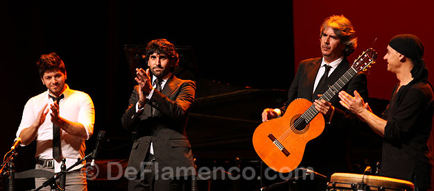Dorantes presentó una propuesta muy jazzística. Demasiado jazzística, me atrevería a decir, teniendo en cuenta que su actuación se enmarcaba dentro de un Festival Flamenco. Todos conocemos el trabajo de este músico y sabemos de su inquietud por utilizar lenguajes diferentes para expresarse, pero insisto en que también el artista debe ser consecuente con el marco en el que se presenta. Además, pecó de extenso. Con una o dos piezas menos habría quedado más comedido y resultón. Aún así, la sesión quedó digna, en general. Dorantes -lo hemos dicho en muchas ocasiones- es un músico con una sensibilidad especial y, además, suele rodearse de excelentes artistas, como Yelsy Heredia –que también estuvo con El Cigala el miércoles, aunque con peor fortuna a causa de problemas con su instrumento y con el sonido-, Rafael de Utrera –magnífico cantaor-, Tete Peña –sobresaliente en la percusión- y Joaquín Grilo. Pero seguimos con los peros. En este caso aplicados al Grilo, que si bien es artista que no tiene que demostrar nada en el baile –y de hecho hay que admitir que es un fenómeno, lo ha sido y lo seguirá siendo-, no es menos cierto que en este espectáculo nos resulta forzado. En lugar de bailar con su naturalidad jerezana se crea un personaje a pesar de que en el escenario no hay ficción alguna. Y lo peor es que el personaje tiene más de pantomima que de drama. No entiendo qué es lo que quiere transmitir Joaquín Grilo en esta propuesta, más allá de los momentos en los que, metido en una atmósfera jazzística, su baile funciona como un instrumento más que interacciona con el resto de los que hay en el escenario. En esos episodios, y en algunos otros pasajes, Grilo nos brindó detalles de calidad. Pero si con Arcángel se advertía una cierta distancia entre forma y fondo, con el Grilo da la sensación de una cierta incoherencia, que no deja ser otro modo de distancia.