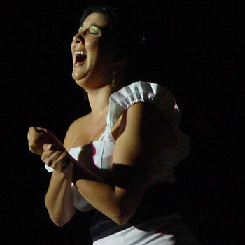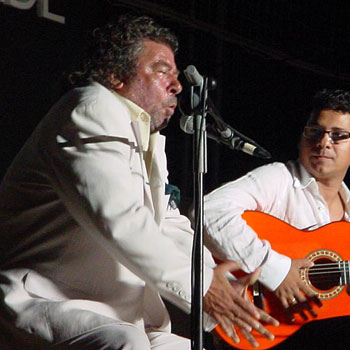 La segunda parte abre con la utrerana Mari Peña, con su marido, el estupendo Antonio Moya a la guitarra. Con su voz dulce y limpia, empieza por tientos tangos. Utrera se ha quedado sin grandes figuras, pero esta señora puede ser candidata a una nueva generación de representantes del arte jondo como se entiende en uno de los pueblos más significativos del flamenco. Por soleá, el cante por antonomasia de su pueblo, es clásica e hiriente, pero quizás matiza excesivamente o la amplificación no estuvo a la altura, y no logra conectar con el público. De Pinini se llaman las cantiñas marca de la casa, y es cuando la dulzura de Mari se agradece especialmente. Bulerías para terminar, recordando a Gaspar de Utrera entre otros. Juan Moneo. El show del Torta. Figura de culto entre cierto sector, caricatura de sí mismo para otros. Grandeza habita en él, pero cada vez cuesta más encontrarla. No obstante, los incondicionales no se cansan de esperar, porque seguramente vale la pena. Vestido de blanco purísimo, con el sobrino Juan Manuel a la guitarra, empezó por alegrías con todo el empaque del cante más jondo. Por granaína y malagueña su personalidad expansiva e imprevisible sigue imponiéndose, y por soleá exhibe una intensidad que roza un ataque de nervios. Agitado y atacado, la naturaleza maleable de la siguiriya le aporta un excelente vehículo para su anarquía, y por bulerías el Torta da rienda suelta a su ya suelta personalidad, y a su impulso bailaor. Después del tiovivo que es Torta, quedan extrañamente fuera de lugar la dulce guajira de Luisa Palicio, y el casi simbólico fin de fiesta que pone el cierre al festival cuando son las cinco menos cuarto de la mañana.