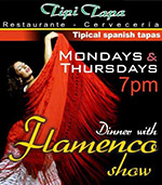 En Tipi Tapa Restaurante Ud. va disfrutar de de un espectáculo de flamenco auténtico, desde una ventana privilegiada: el tablao.
