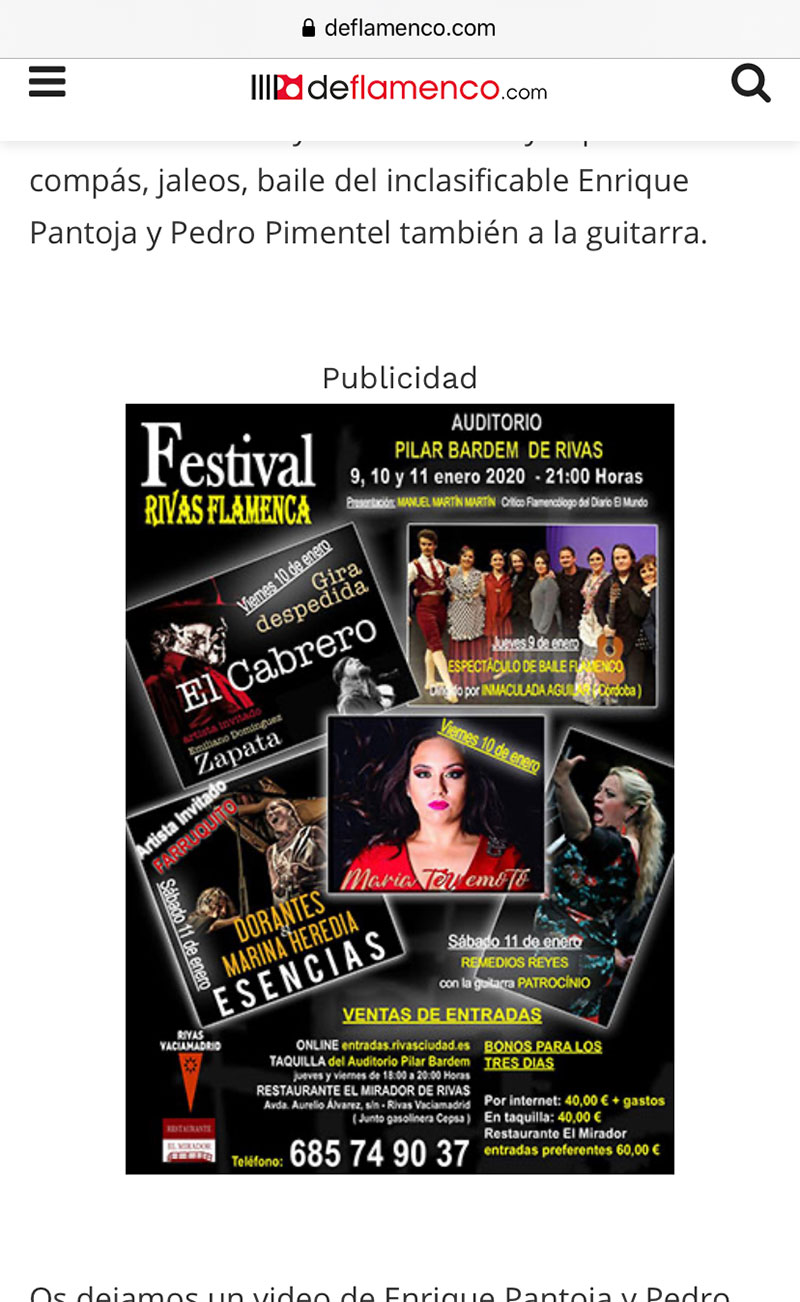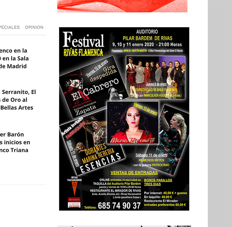 - El anuncio en formato ‘cartel’ se podrá ver dentro de los artículos de todas las secciones de la revista deflamenco.com (no incluye agenda y otras secciones como cursos, guia o tienda)