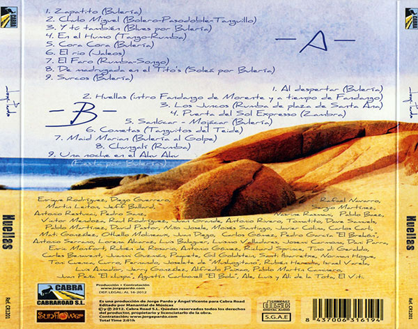 “Huellas” sabe a Jazz y vientos flamencos, está llena de frescura y vitalidad, y de alguna manera; aúna vanguardia compositora junto a la destilada y concentrada esencia del Flamenco. Una visión de este arte visto desde fuera para dentro y desde dentro para fuera. Un sentimiento flamenco entre el sonido de una banda de jazz. Una visión de la improvisación con nuevas referencias. Encuentro y dispersión al mismo compas. Una ejecución para quienes sienten, respiran y conocen esos fundamentos, que no son otros que los del alma mas profunda donde no existe el tiempo ni el lugar…