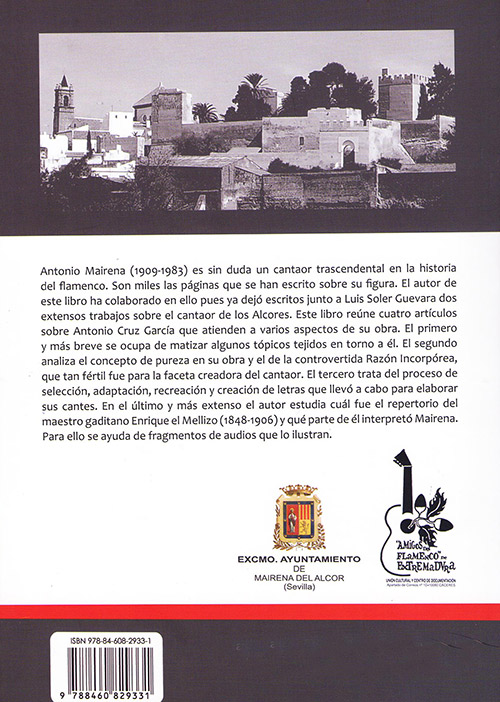 Antonio Mairena (1909-1983) es sin duda un cantaor trascendental en la historia del flamenco. Son miles las páginas que se han escrito sobre su figura. El autor de este libro ha colaborado en ello pues ya dejó escritos junto a Luis Soler Guevara dos extensos trabajos sobre el cantaor de los Alcores. Este libro reúne cuatro artículos sobre el cantaor de los Alcores que atienden a varios aspectos de su obra. El primero y más breve se ocupa de matizar algunos tópicos tejidos en torno a él. El segundo analiza el concepto de pureza en su obra y el de la controvertida Razón incorpórea, que tan fértil fue para la faceta creadora del cantaor. El tercero trata del proceso de selección, adaptación, recreación y creación de letras que llevó a cabo para elaborar sus cantes. En el último y más extenso el de autor estudia cuál fue el repertorio del maestro gaditano Enrique el Mellizo (1848-1906) y que parte de él interpretó Mairena. Para ello se ayuda de fragmentos de audios que lo ilustran.